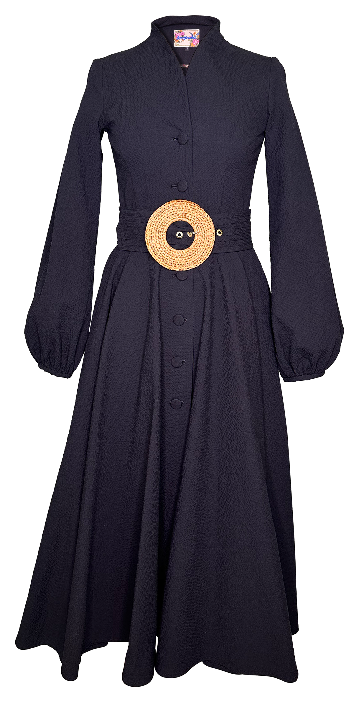 - Buttons: fabric covered (97% cotton, 3% spandex)